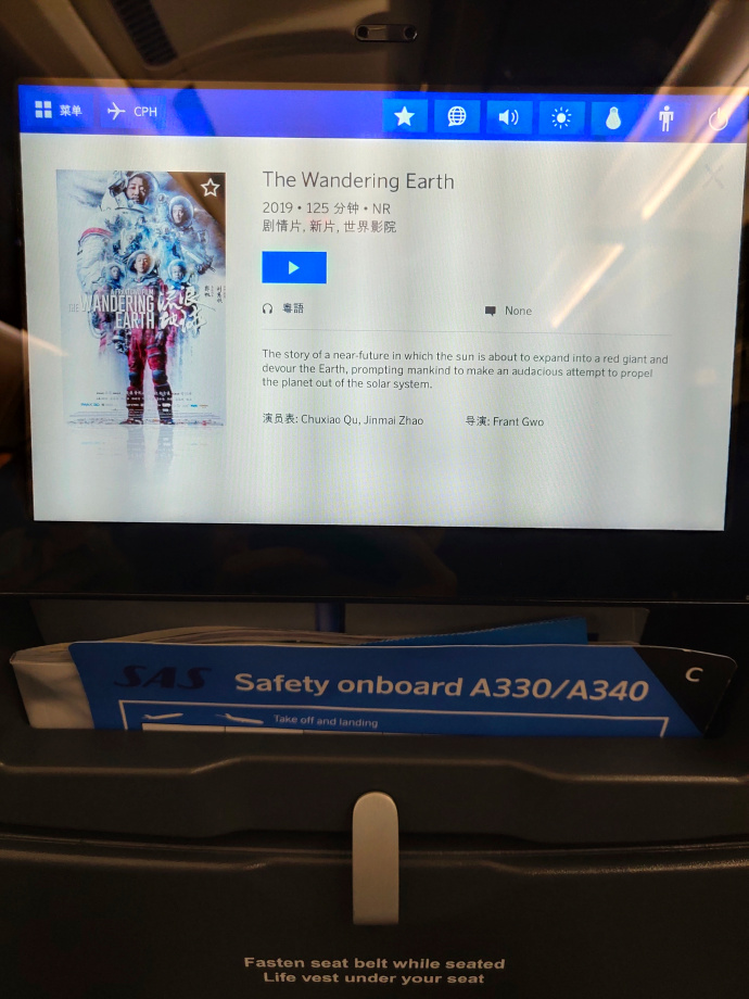 去年去新疆的时候飞了5个小时,这次要飞10小时40分钟…想想就很痛苦。先看看多媒体设备,发现它还不如上海飞北京的南航,游戏很无聊…电影里面居然有流浪地球,要不要再刷一次呢?后来飞机巨大的噪音让我放弃了。