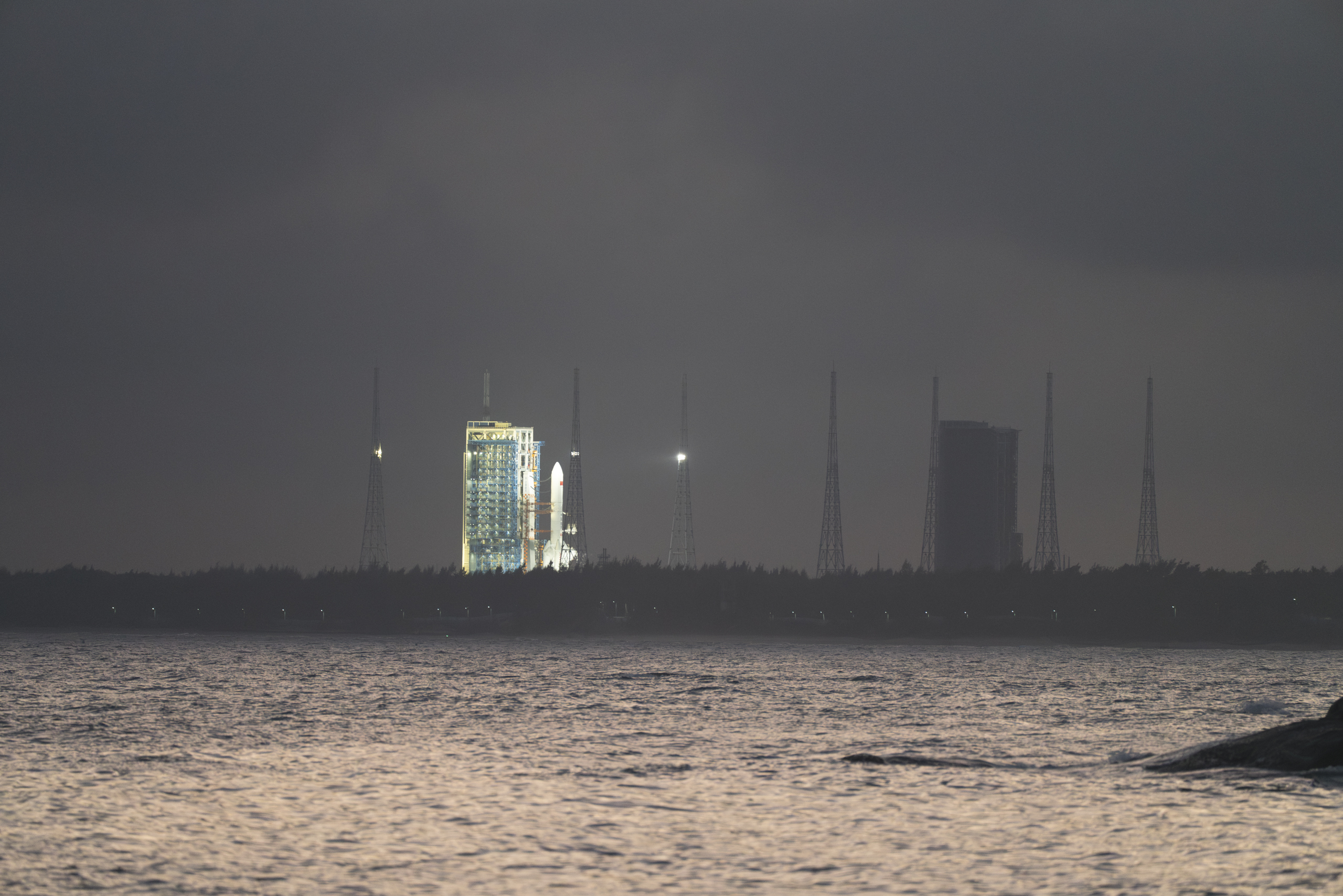 2020年11月,我和小羽看过一次“长五”发射,“嫦娥五号”在凌晨四点半升空。当晚多云,震撼之余也有遗憾,火箭飞行十几秒后就进云看不见了,只能听见发动机的轰鸣。