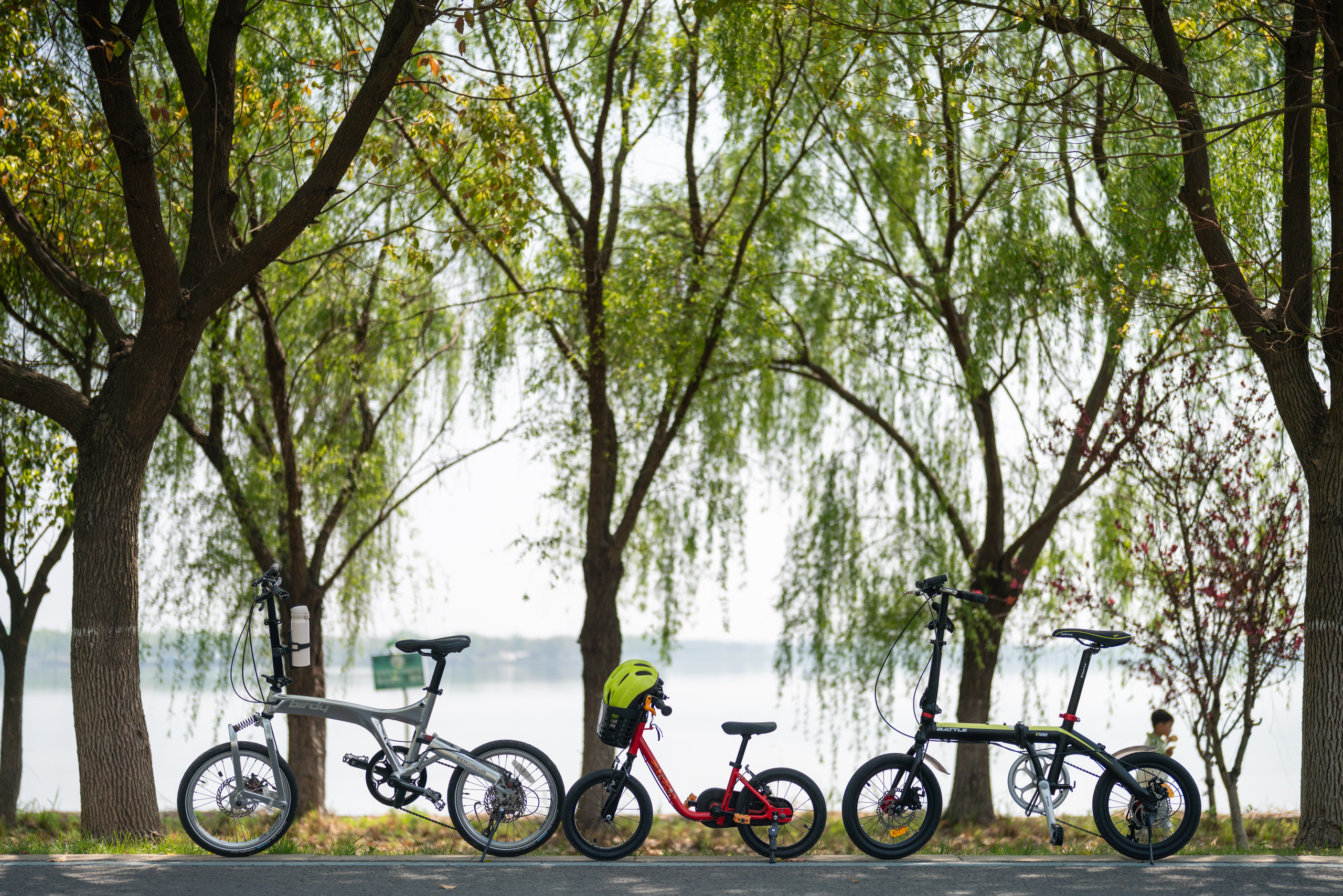 于是小万万骑着他的14寸迪卡侬,小羽骑着她的birdy,我呢?我在后面跑…