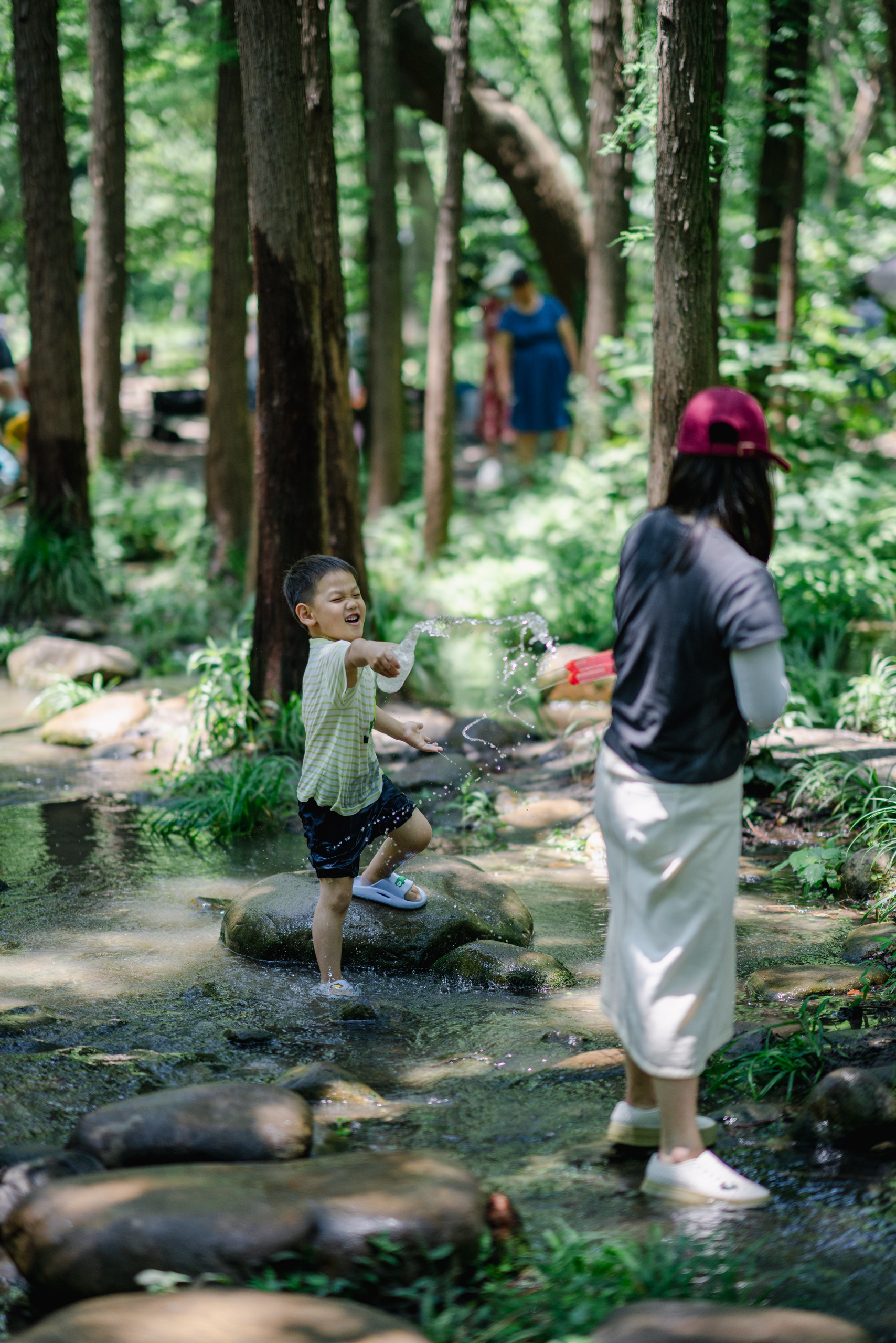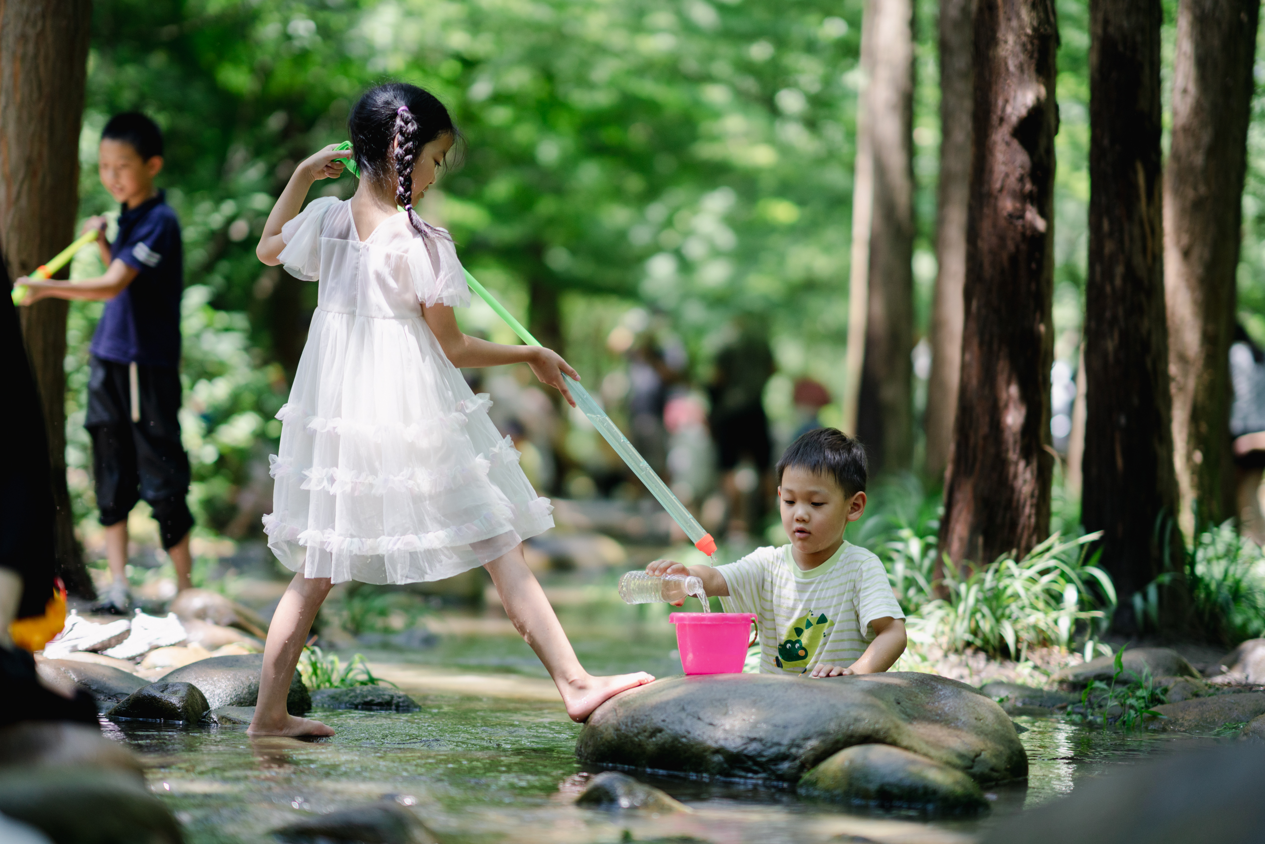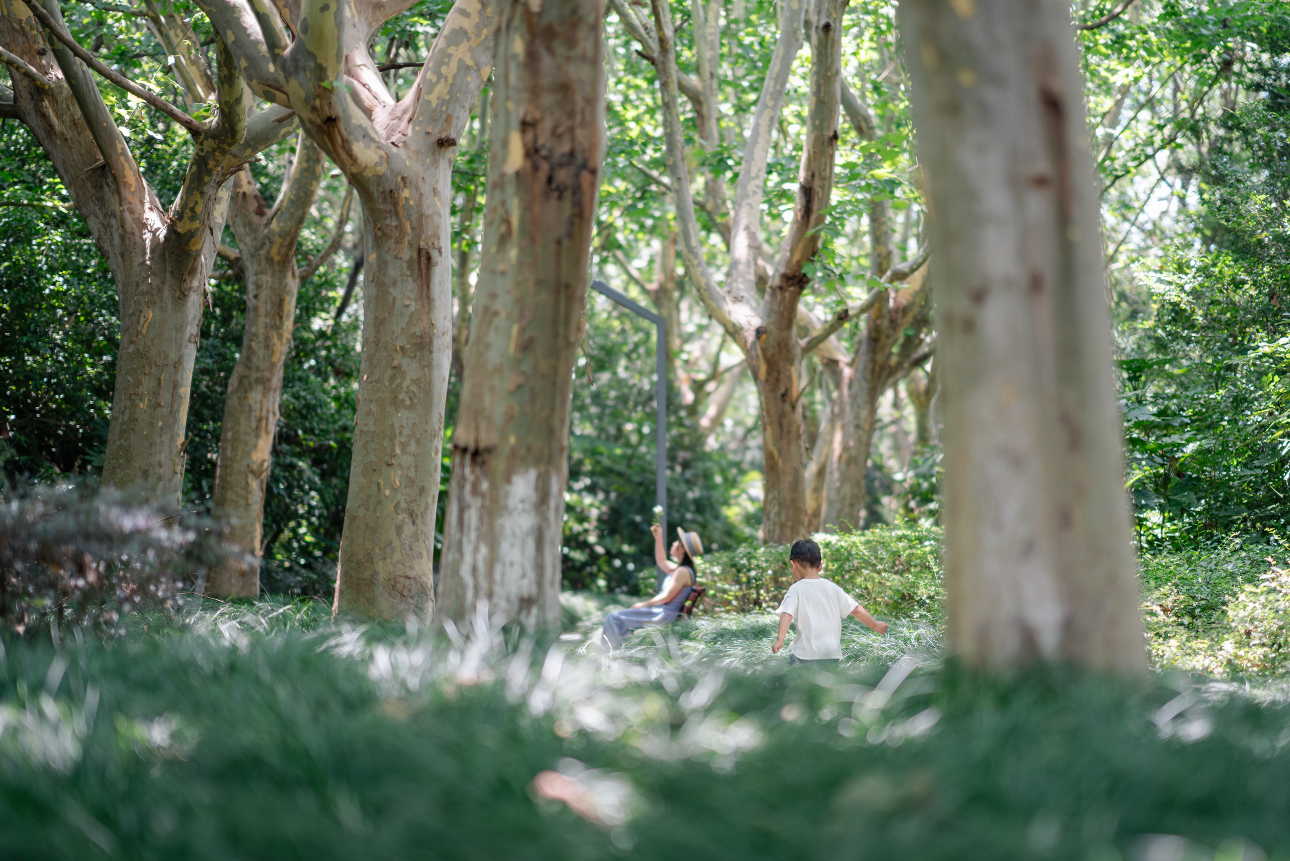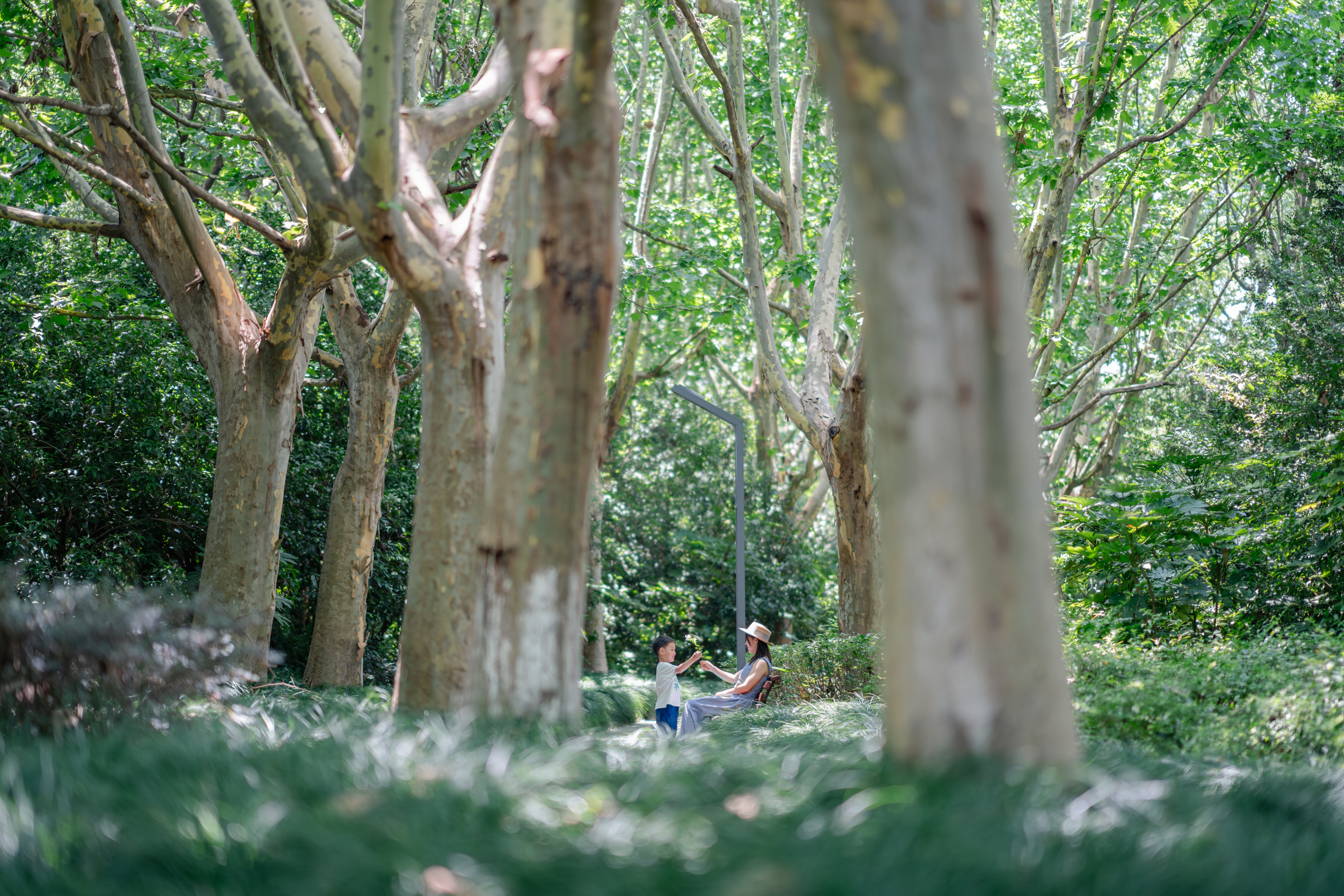 上海人民没什么玩水的地方,这里聚集了很多小朋友,好在地方也大。公园把水放到树林里,也算是独特的体验。