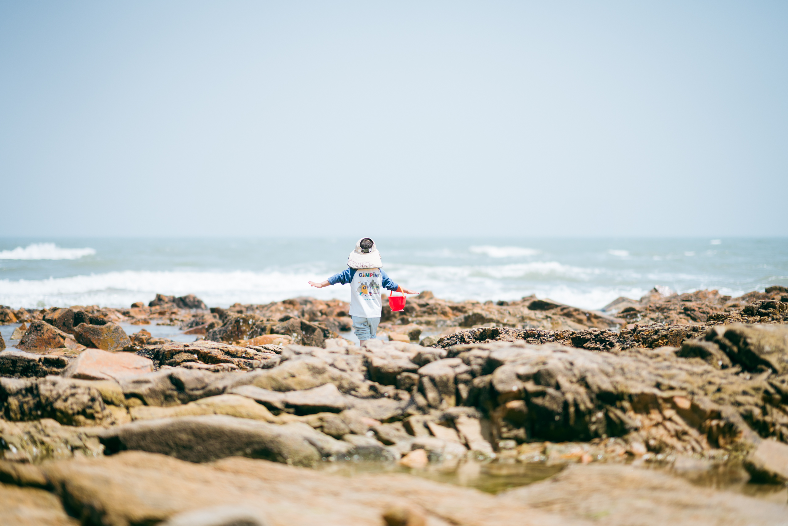 想着很久没好好带他玩,请了天假,加上周末,去了比较冷门的日照。有点冷空气,时而穿着冲锋衣,时而觉得要被烤熟。