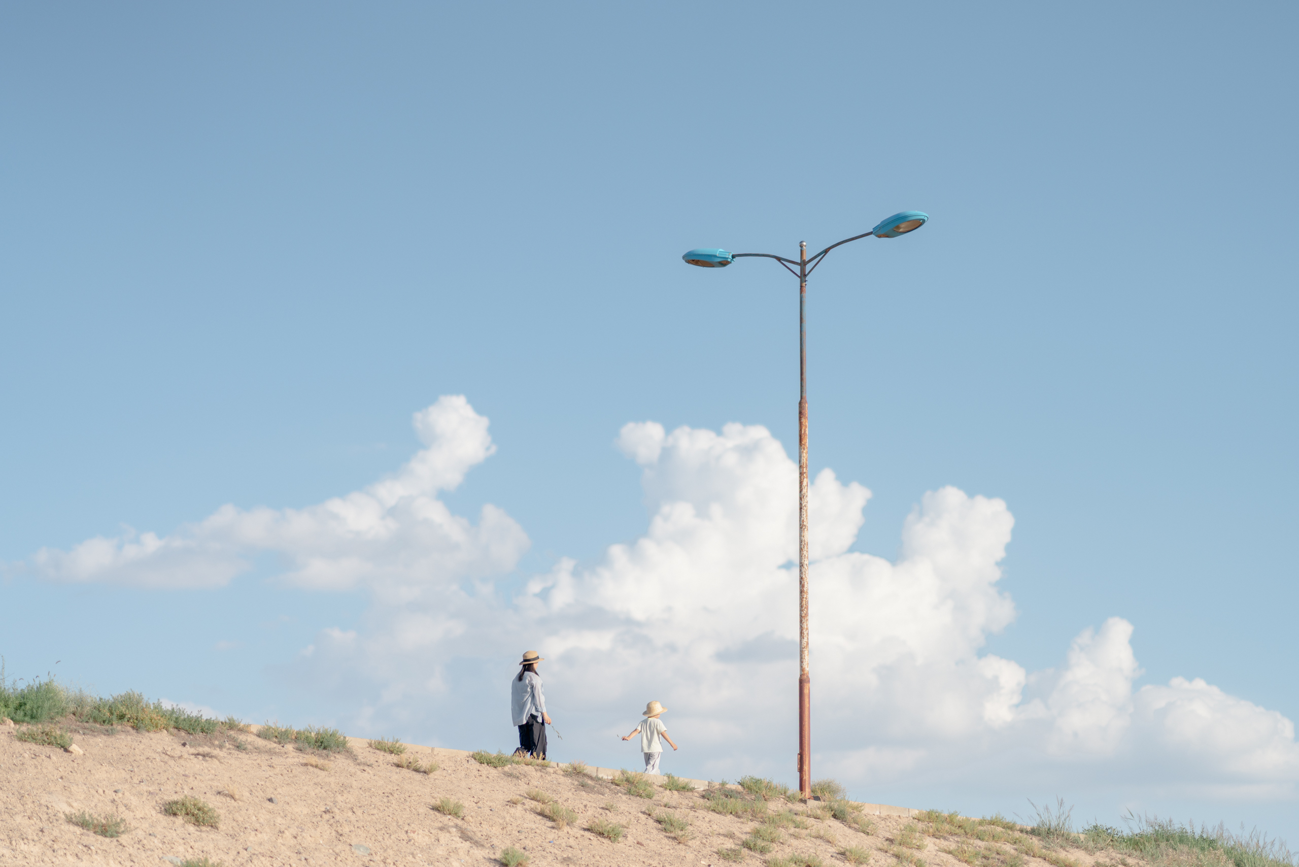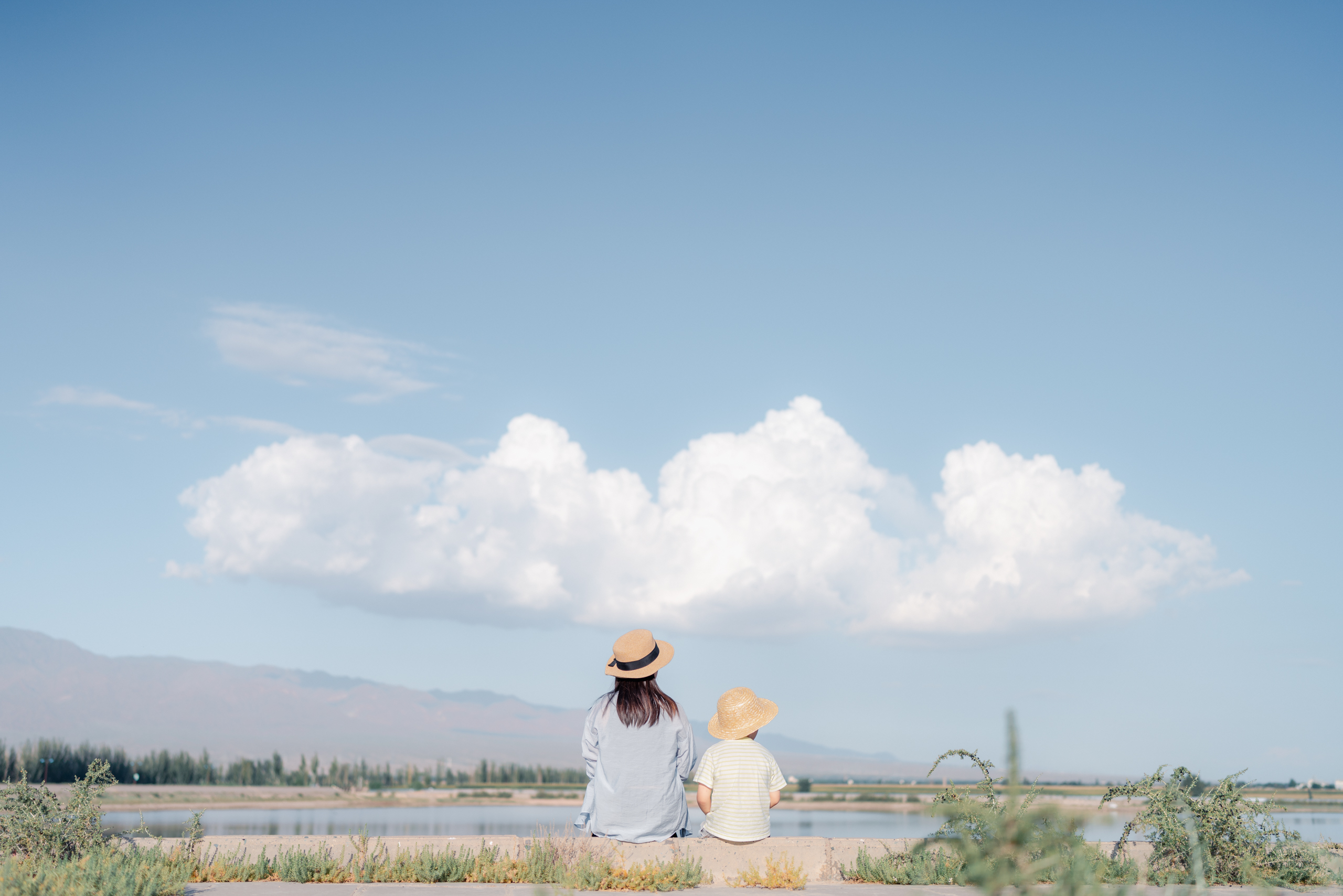 堤坝的落差正好带来了斜向上的视角,加上几朵积云,拍到了相当夏天的照片。