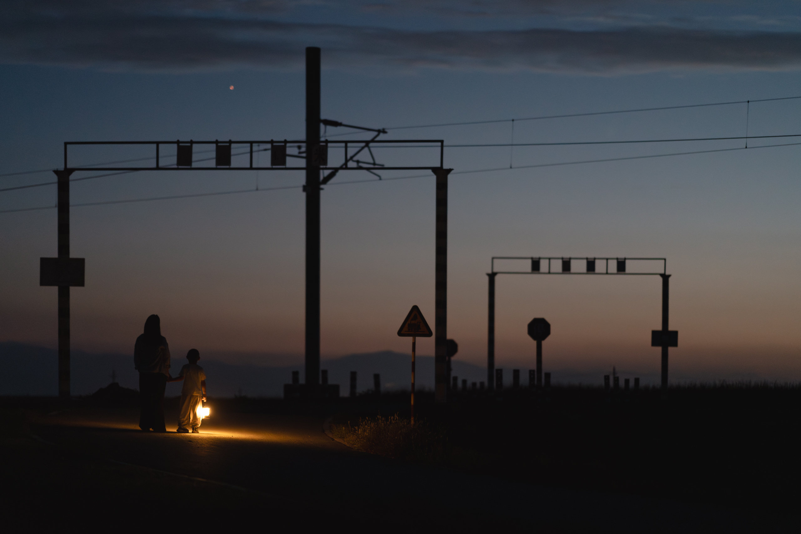 傍晚,云彩退去,天气转晴,吃完饭,果然还是想拍点人与星空,放弃了去大峡谷,带他们来到了山羊堡的单线铁路。远方机场的灯光很亮,不过依然能看到漫天繁星。