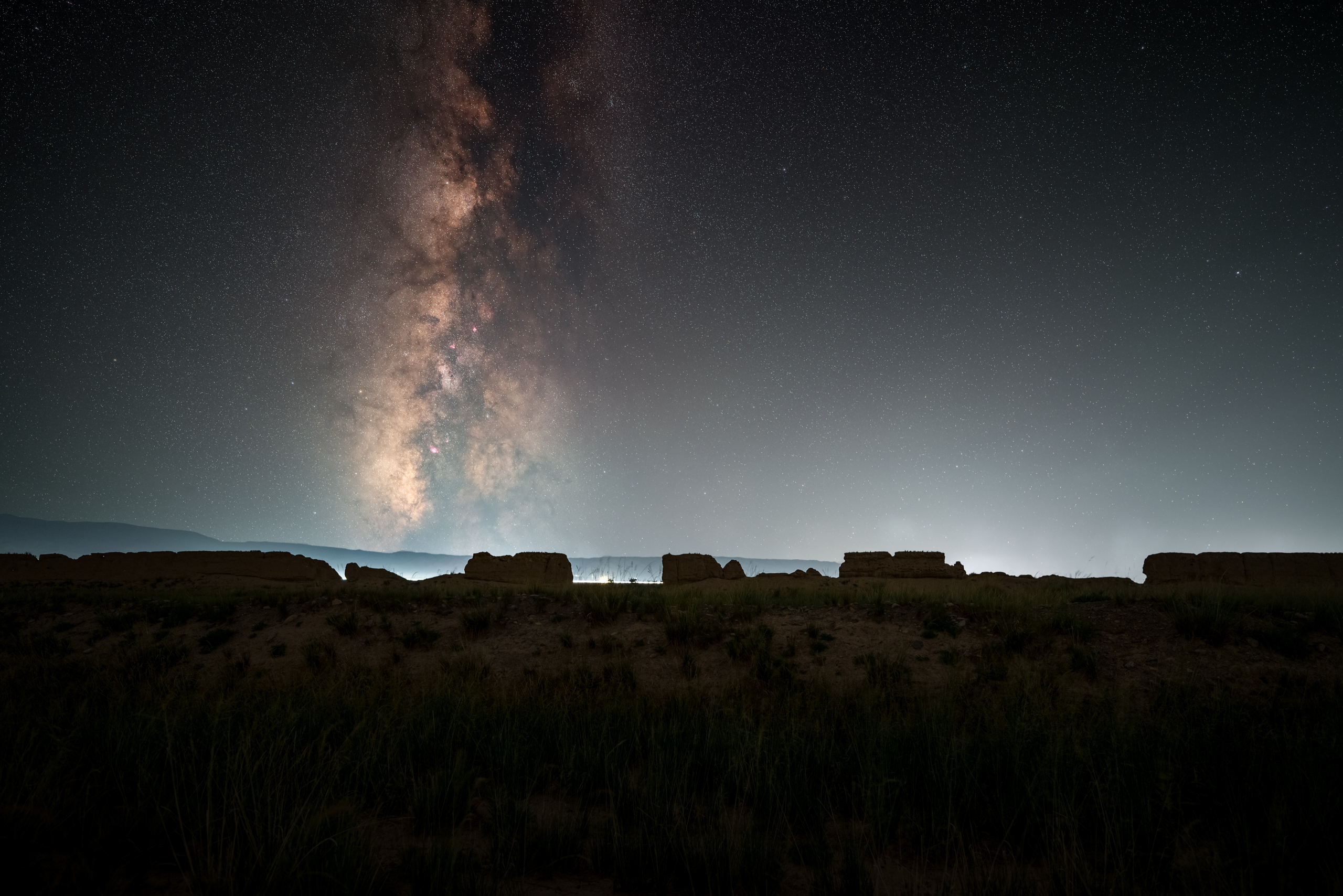 深夜,我一个人出发去拍星。银河的方位已经不适合祁连山或者是马营河峡谷。跟着定位来到了峡口古城,这是上次跟强生来过的地方。没想到这居然有路灯,计划泡汤😭。