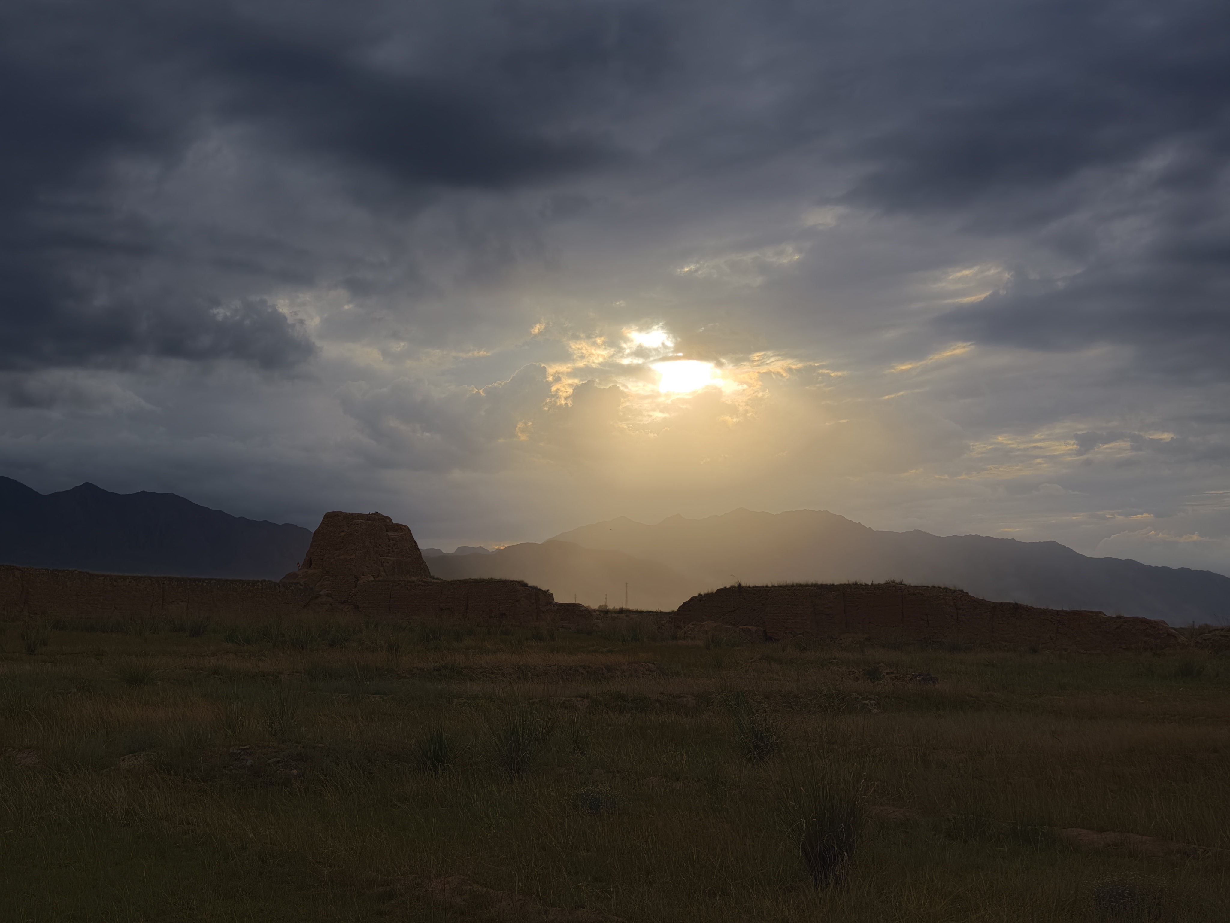 开车到跟前,城墙、角楼依然残存,不过已经被风化得不成样子。想着可以拍个银河或者月升什么的,不过西面已经乌云压城,存下定位,明年再来。