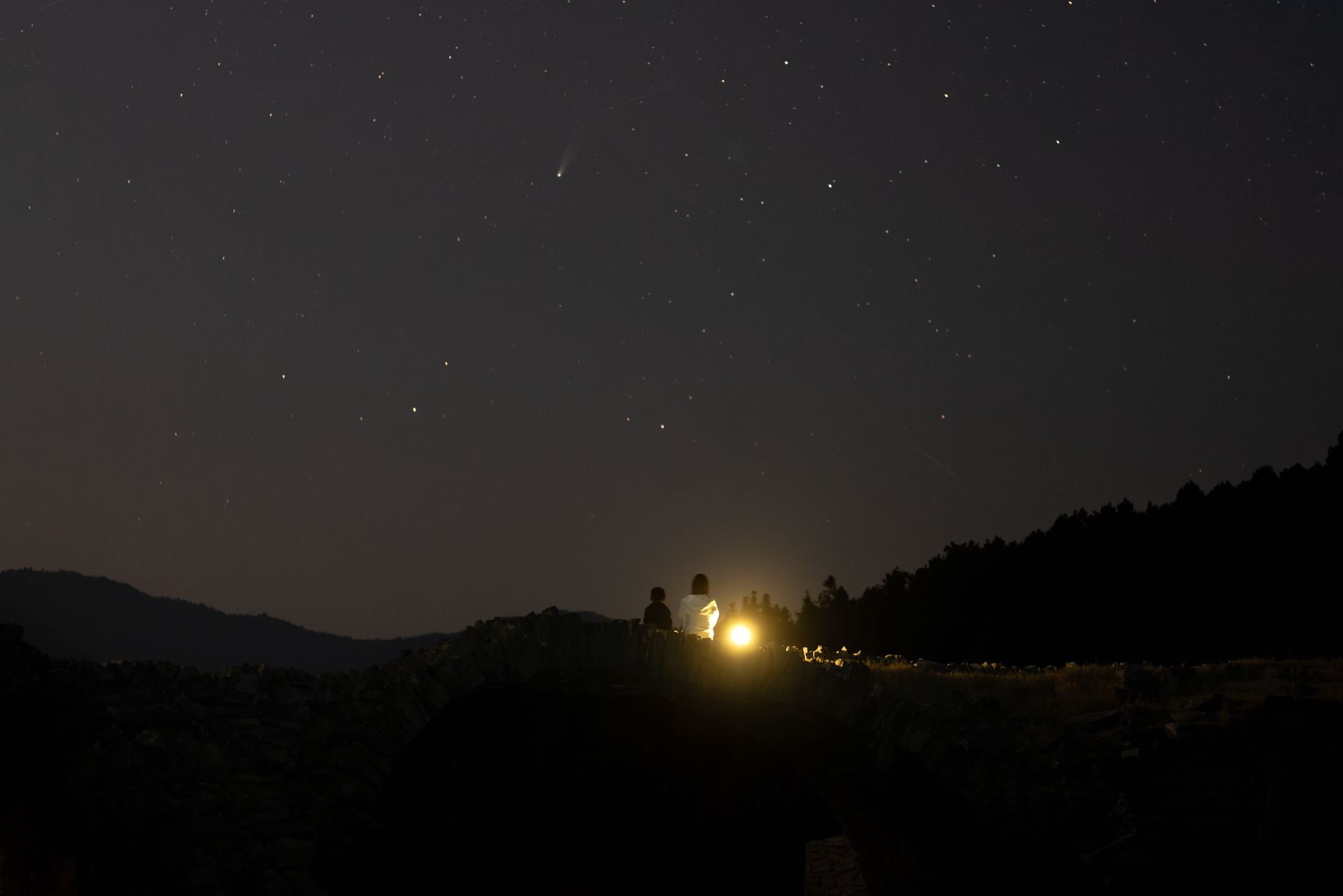 天渐渐黑了,Lemmon彗星比新智慧星确实差得远,蓝调时刻废了很大劲才在照片中找到它,可能是空气不好+月光的双重影响,即使天全黑了也依旧只能在相机屏幕上看见,更别提离子尾了。去之前还跟小万万吹牛说要给他看彗星,无法兑现了😂。